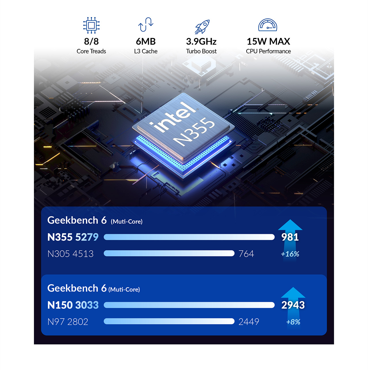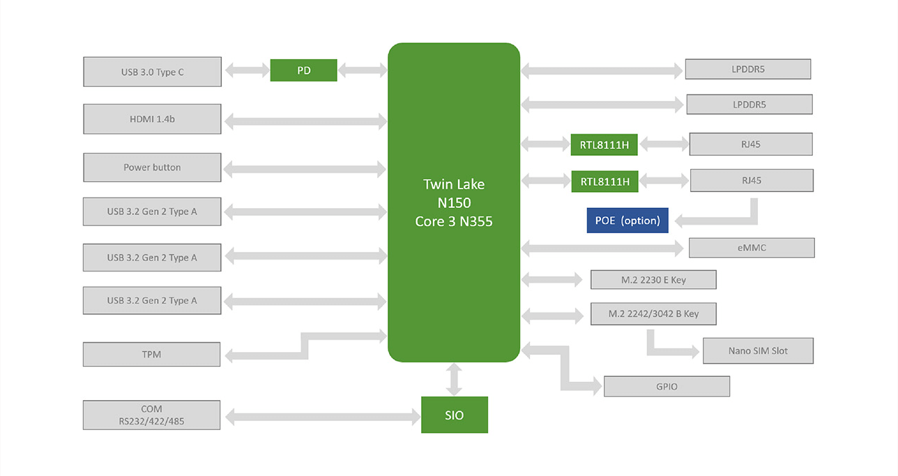| SYSTEM | PROCESSOR | Intel® Twin Lake N150(4C), and Core™ i3-N355(8C8T) Processor | |