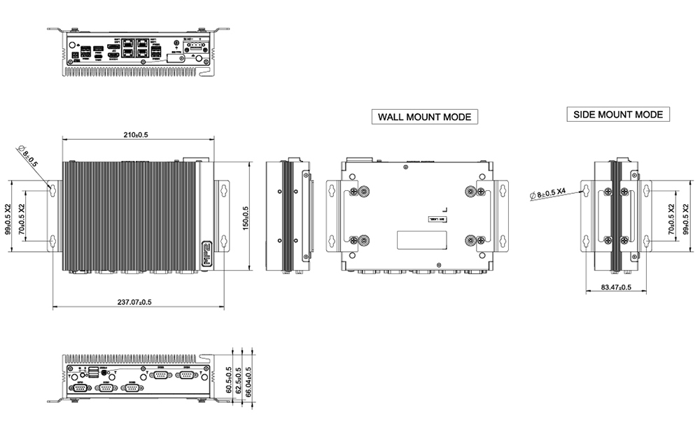 | MOUNTING | Wallmount / Side Mount / 75 mm x 75 mm VESA Holes & Din Rail Mount Combo Kit (Optional) | ||