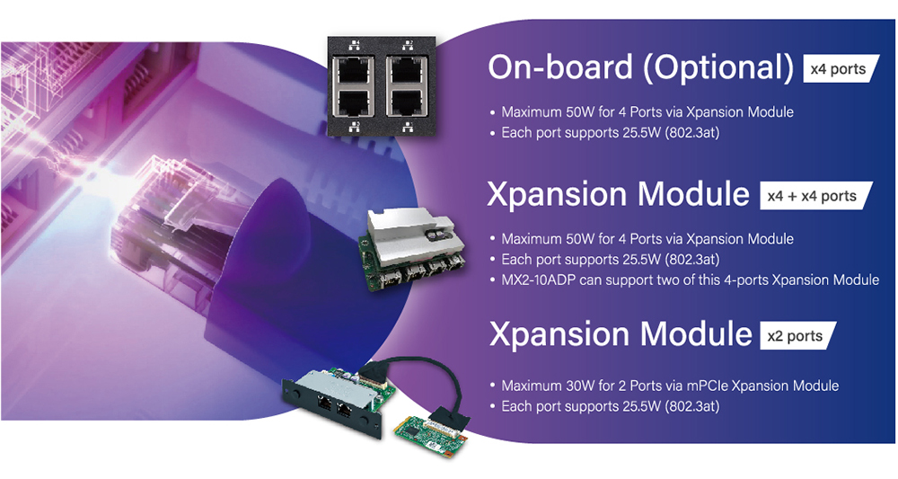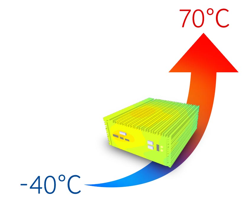 MX2-10ADP is designed in patented aluminum enclosure not only for atheistic appearance but also for fan-less application in extreme temperature condition from 40 oCC to 70 oCC.