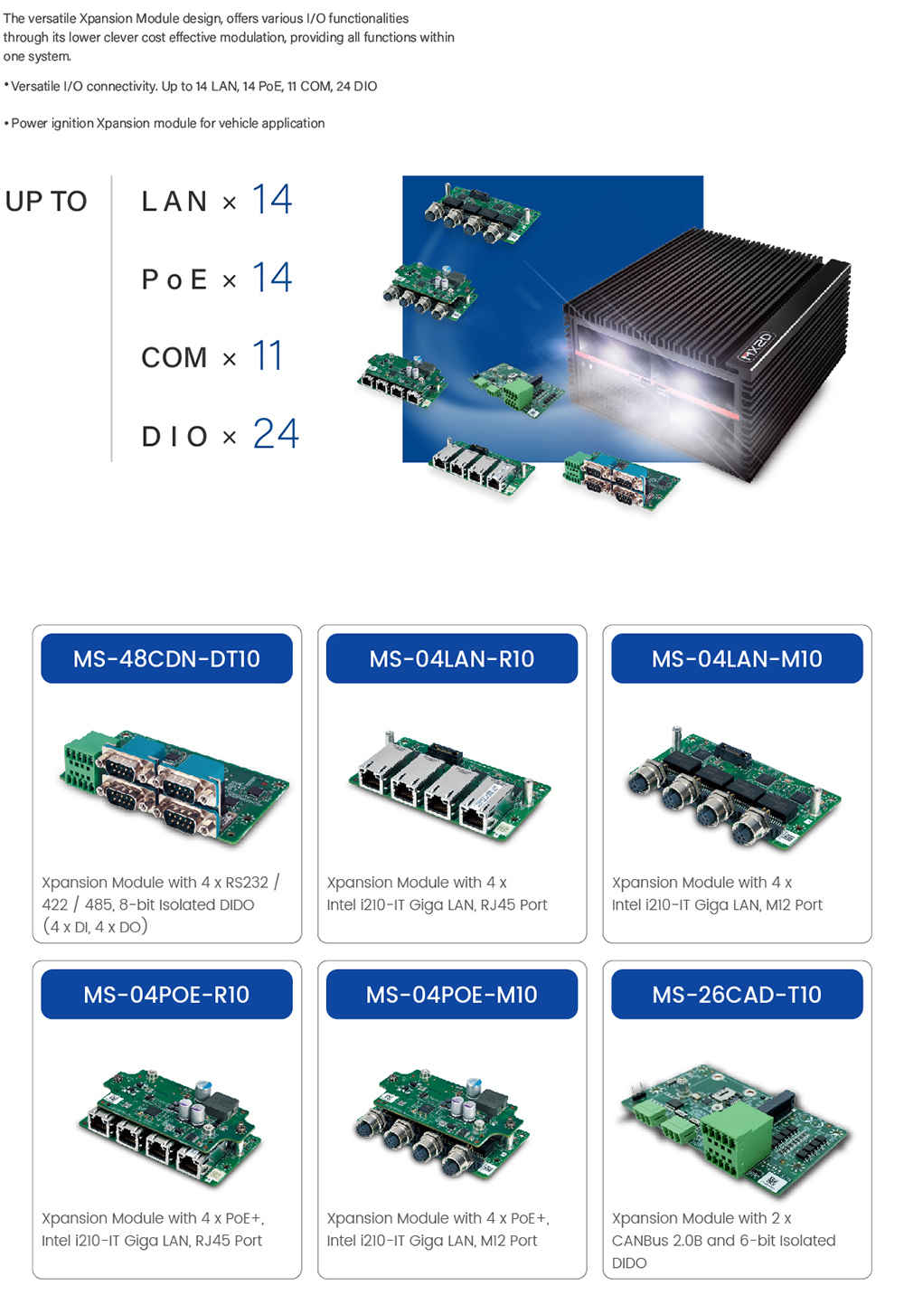 | ETHERNET | 4 x Intel® I226-LM 2.5G LAN / *Optional 4 x PoE 802.3at Xpansion "MS-01PON-S10" | ||